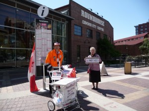 Anyways..I ran into these TRULY adorable folks directly in front of The Roundhouse this morning and if you live in Yaletown and would like to sign the Stop the HST petition these two are who you want to see!