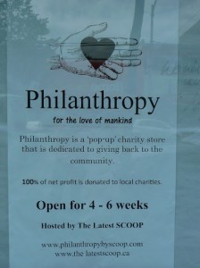 Have you ever heard of a “pop up shop” that donates 100% of it’s net profits to wonderful local charities? (And has beautiful and amazing merchandise from local businesses that you would totally buy?)