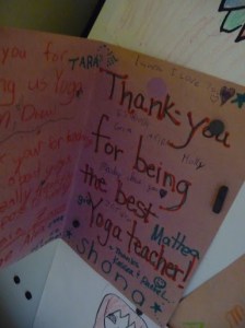Yesterday was my second to last yoga class with those wonderful Elsie Roy kid’s I have grown to love so much these past few years. I have reminders of them all over my apartment and feel so lucky to have had the pleasure and joy of their magic and wisdom and fun for so long. It has been such an privilege to watch them grow and share in yoga with them each week, and they will absolutely LOVE my replacement! That I know for a fact. I know I will still be running into them at my favourite place in the world (the Roundhouse) which is so nice! It was a difficult decision but sometimes you’ve got to pass the torch! Change is good, it really is. I have taken a class up at UBC Hospital in more of a clinical/theraputic setting in place of it (and in addition to ALL of my other classes), and will be devoting some extra time to my volunteer activites… and the kids will get a wonderful fresh and new yoga teacher! It all works out. It always works out. If you are debating a change think long and hard… but don’t be scared! just go for it. The world is waiting for you!!!
