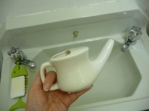 There are more advanced techniques using various herbs and oils, but the simplest technique known, is jala neti. Jala neti uses water (jala) for the cleansing process. Above is a pic of my neti pot I snapped this morning before embarking on my morning neti. Neti isn’t part of my daily routine but I do it a few times per month (and it is best to lubricate your nostrils with sesame oil after doing neti as it can dry out the nasal passages). With all the dust, pollen and other irritants we breathe in we can get really clogged up and not even realize it. Neti is a good place to start kriya-wise. And with cold/flu season being here it is an inexpensive, holistic and drug free way to breathe freely. Like anything, you should do your research and speak to your caregiver, and as far as any of the other kriyas out there. Only practice under the guidance of a VERY qualified teacher. After all, we are playing with the energy body and that is powerful stuff. Namaste.