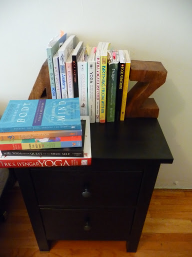 This is my nightstand right now (although I tidied it up and took away the magazines.) And this is ‘just’ the nightstand which doesn’t include the overflowing bookcases or the stacks of books everywhere that won’t fit in the bookcases.