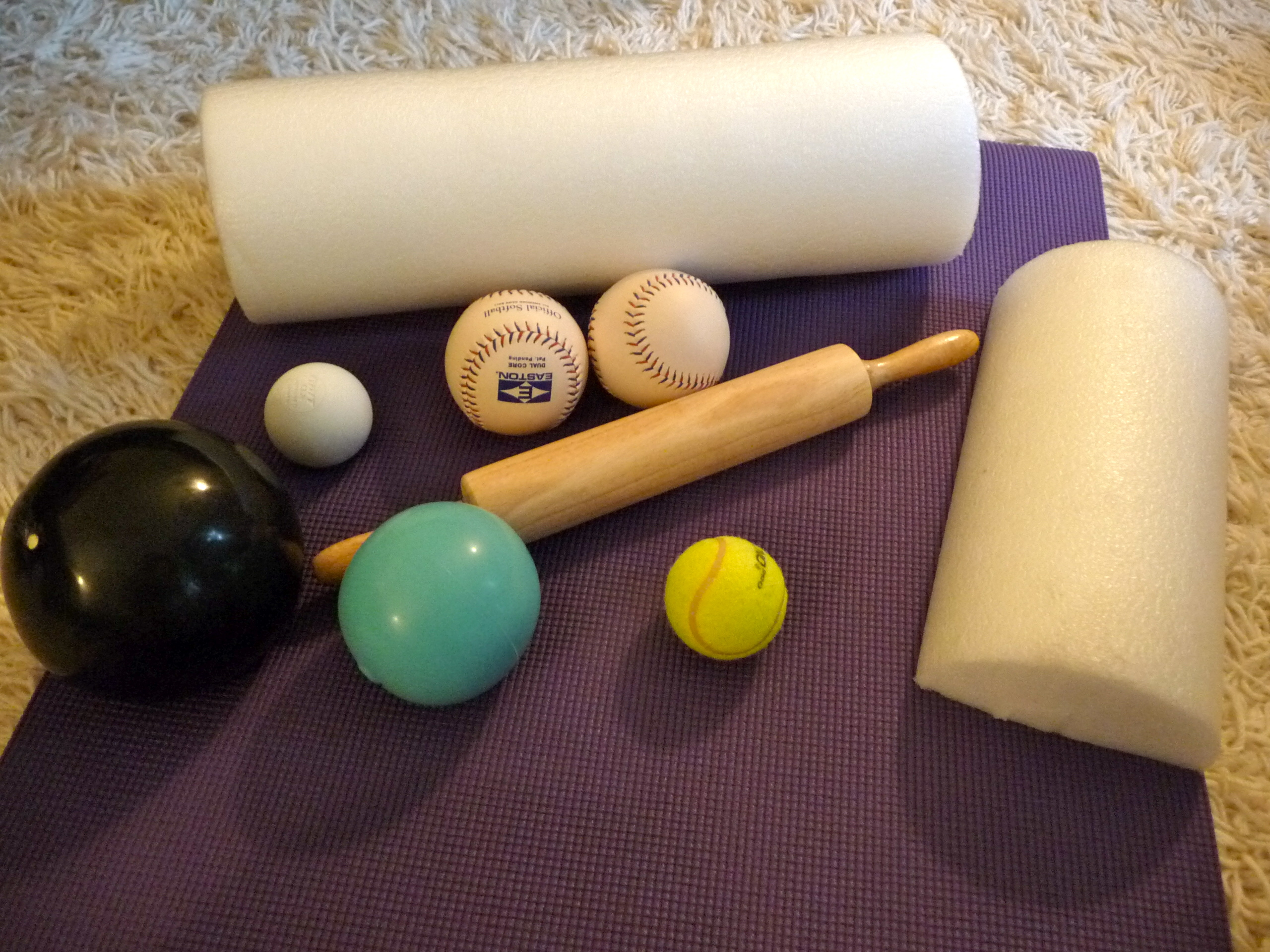 For instance, I have been dealing with a tight TFL that has been pulling my knee cap laterally and my “tools” (photo below) help me more than I could ever say. Just wanted to share as all these tools are very inexpensive and easy to get at any sporting goods store. Buy them used and thy are just as wonderful.